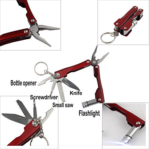 - .The multi-function pliers tool can be folded, it designed with different mini tool, such as knife,bottle opener,small saw, screwdriver, flashlight and Hanging rings.
