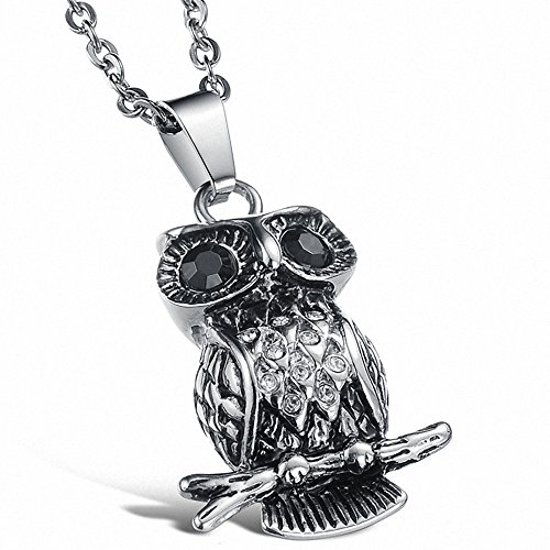 -. Title : MFYS Jewelry ファッション メンズ レディース ビンテージ 夜フクロウ ブラック オニキス 大きな 目玉 フクロウ ステンレス (チェーン付) (スチールシルバー) ペンダント ネックレス[ギフトボックスを提供]