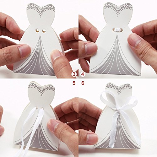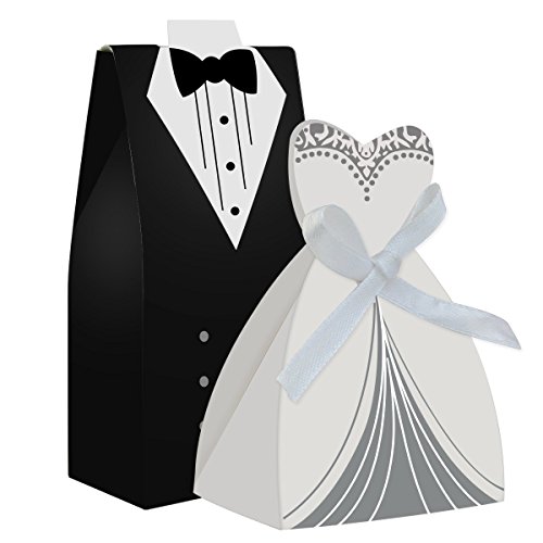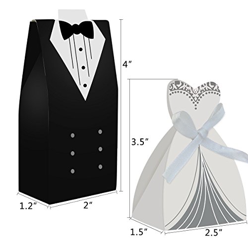 SZ 100 Pcs Laser Cut Candy Boxes Bags Bridal Groom Gift Cases Tuxedo Dress Gown Candy Box Wedding Favors And Gifts With Ribbon