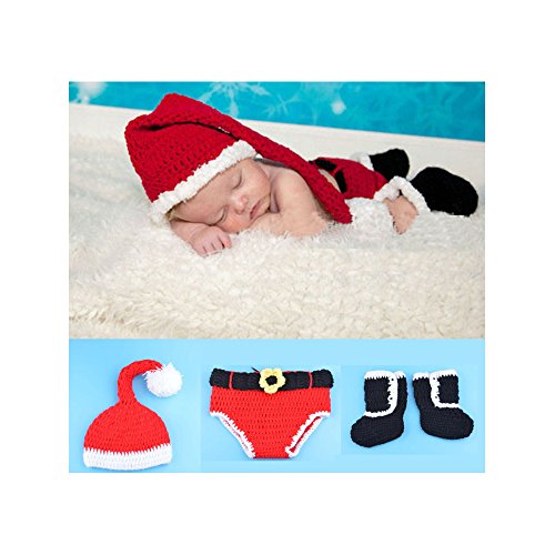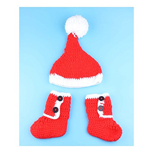 -. Feature : Christmas Baby Knit Santas Hat Booties Costume Photography Props Sets / Age: 0-12 Months baby boys girls infant newborn; Season: SP.R.Ing, Autumn, Winter / Maximum water temperature 30 degrees Celsius Hand washing; Handmade cotton knitted baby costume sets / Comfortable, soft and beautiful; Photo Prop Sets for new birth, birthday, Halloween, Christmas costume, events, evening / Takes about 10-20 days arrive by E-packet