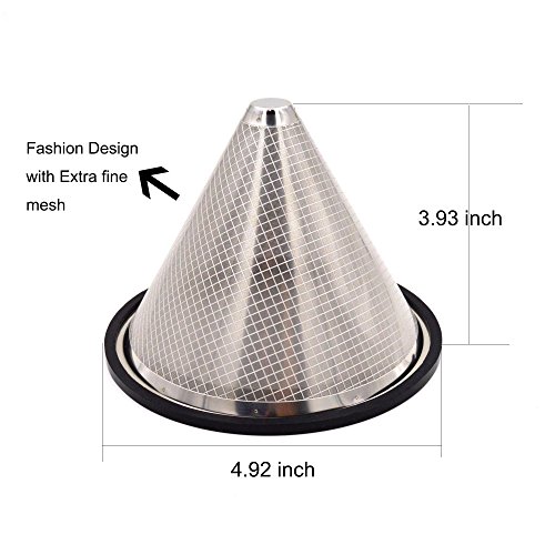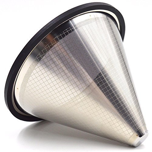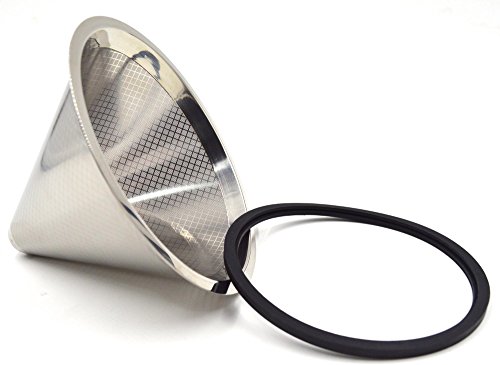 -. Feature : Stripe designed mesh pattern - New and Fashion design on mesh pattern, but keeps the mesh with micro holes, well prevent the coffee grounds / Making your coffee like the pros - The cone coffee filter is a great alternative for traditional paper filter, will be better to guarantee the natural oils, flavours and nutrients from your favorite coffee beans. / Durable, reusable and eco-friendly - the coffee dripper is made of high quality 18/8(304) stainless steel, which is RUST Free, LEAD Free, BPA Free and can be used over again and again and meet the food safe standard. Also, no worries about waste and run out off paper filter, time and money saver and environment friendly / Easy to use and clean - With silicone rim covered, the cone coffee dripper is easy to handle and no worries about heat hurting. Also, the silicone rim is removal and can be cleaned with soda and warm water as well as the stainless steel part. / Fits widely - the cone coffee filter can fits almost all the popular brand carafes, mugs and cups and can brew almost all the popular brand coffees
