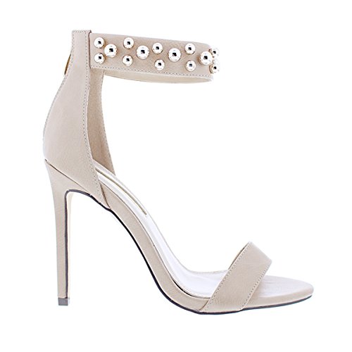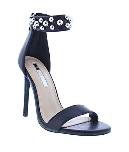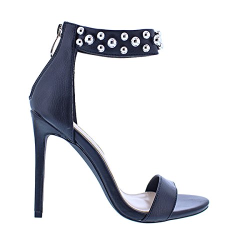 Binding : Apparel Product Description These cuties will you the definite look your special night out needs! Features include, a faux leather texture, open toe, studded accent ankle strap, a back zipper closure, and a cushioned foot bed. Approximately a 4 1/2 inch heel. 0