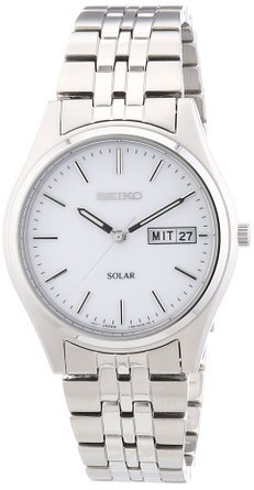 세이코 솔라 맨즈 팔찌 워치.제품의 설명: - 맨즈 손목시계 - 세이코 솔라 콜렉션 -스테인레스 케이스와 팔찌 - 시간 마커와화이트다이얼 - 초침- 일(날)/일(날)창 - 푸쉬 버튼 릴리즈와 clasp배 이상 - 내수성 또한부속 하고 있습니다 - 2년간의 메이커 보증 - presentation 워치박스서는,.