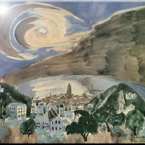 Rikki Knight RK-6intilec-3180 6" X 6" Walter Gramatte Art Moon Over Barcelona Design Ceramic Art Tile