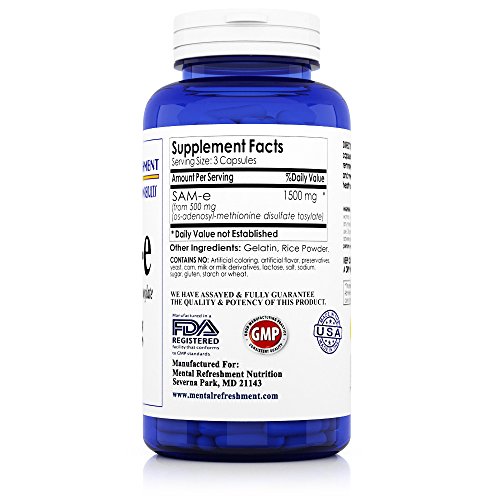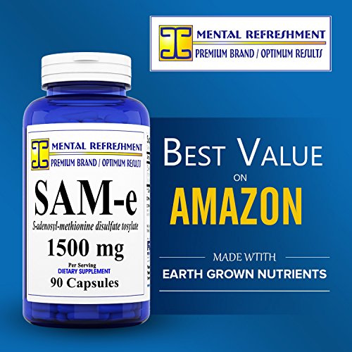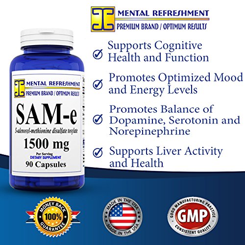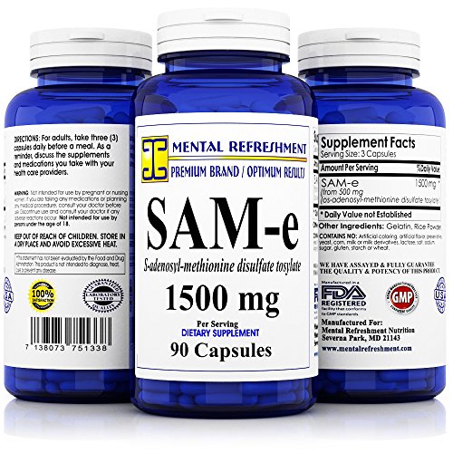 Mental Refreshment: SAM-e 1500mg per serving - 90 Capsules Best Value, S-AdenosyL-Methionine Disulfate Tosylate (1 Bottle)
