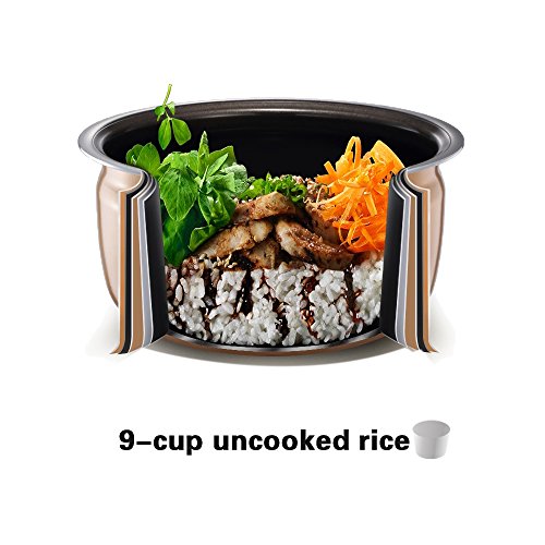 Capacity:9 -cup uncooked rice,suitable for 1-6 people ; cup ,paddle and steamer are included,it is the best cooker to cook brown rice ,cereal soup,porridge ,egg,jambalaya, chili ,steam vegetables and so much more!