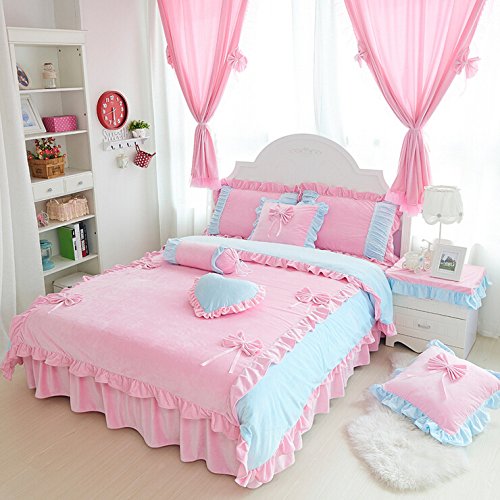 (Auvoau)/Bedding Bath/Bedding/DIRECT FROM USA/Auvoau Bedding Set, Ruffled Edging Princess Girls Flannel Duvet Cover Sets (Twin, Pink Blue)