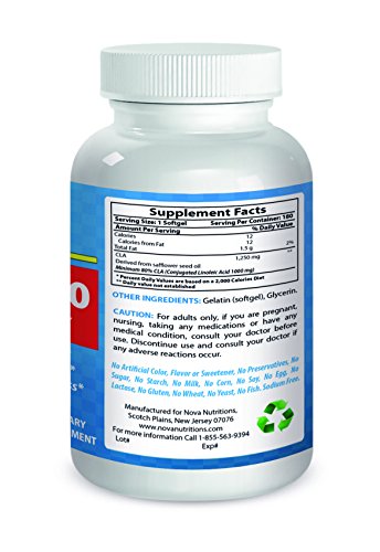 -. Binding : Health and Beauty -. Brand : Nova Nutritions -. EAN : 0732363270034 -. Feature : CLA helps reduce body fat* / CLA increases metabolic rate* / CLA promotes lean muscle mass* / CLA 1250 contains minimum of 80% Conjugated Linoleic Acid / Nova Nutritions products are manufactured to high standards of quality, efficacy and safety. All Nova Nutritions Products are manufactured in accordance with Good Manufacturing Practices (GMP), among the highest standards in the world -- Proudly Made in USA -- Purity & Potency Guaranteed -. Label : Nova Nutritions -. Manufacturer : Nova Nutritions -. ProductGroup : Health and Beauty -. ProductTypeName : HEALTH_PERSONAL_CARE -. Publisher : Nova Nutritions -. Studio : Nova Nutritions -. Title : CLA 1250 mg 180 Softgels by Nova Nutritions -. UPC : 732363270034