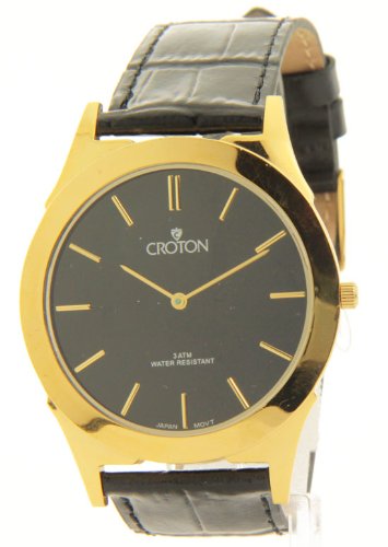 -. Title : Croton CN307464YLBK Mens Black Leather Slim Casual Watch
