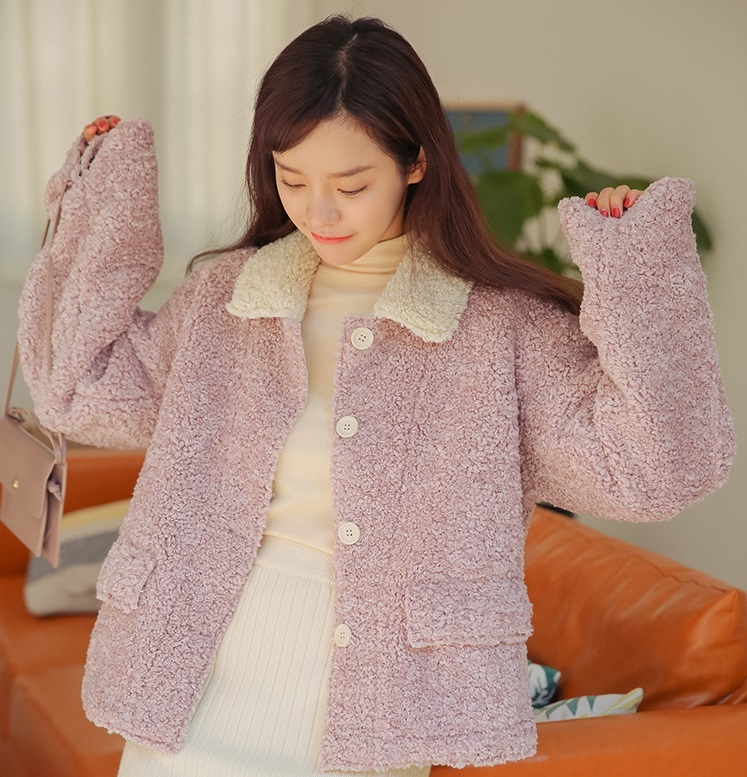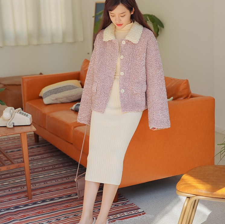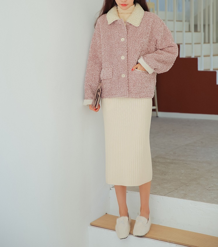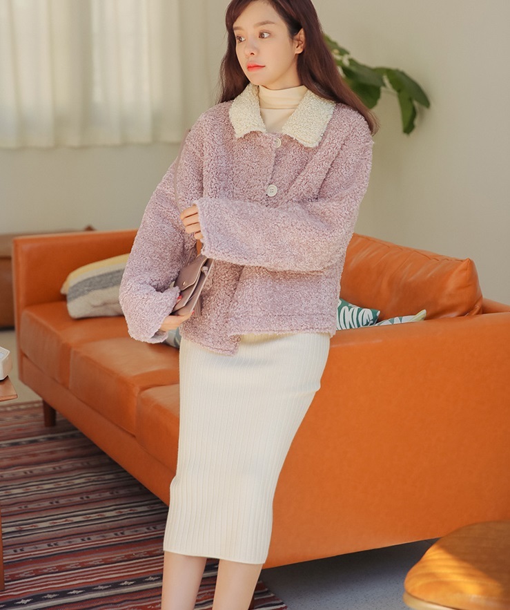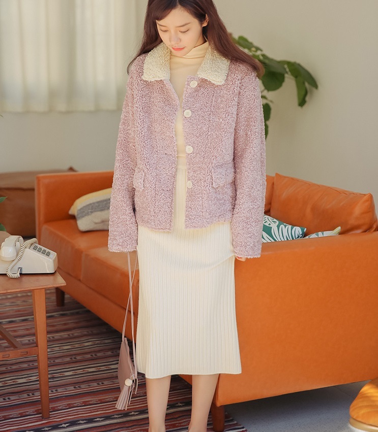 ボアのような風合いのファブリックと襟とのバイカラーでトレンドライクな仕上がりに♪