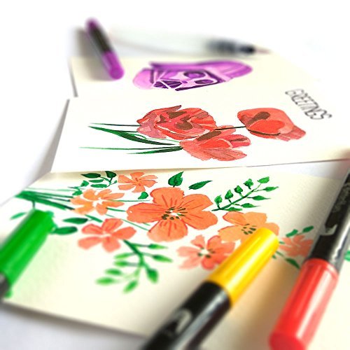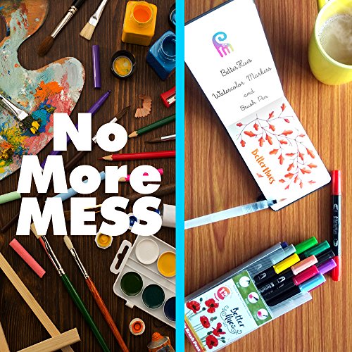 Double Tip Watercolor Markers and Mixer Brush Pen Combo - No Bleed or Mess with Water soluble Vibrant colors to make your Art effortless and quick! BONUS Coloring Pages and e-books on Painting tips