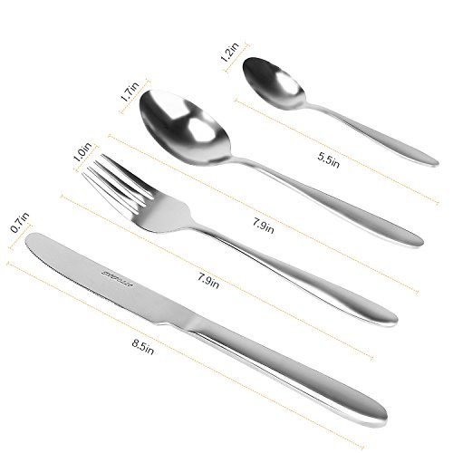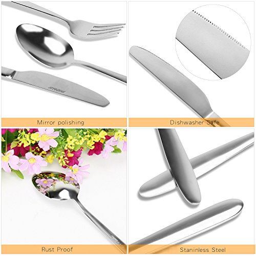 About SUNPOLLO If for any reason you do not satisfy with our products, please feel free to contact our service department, we will try our best to solve your problem and offer timely and reasonable solutions for you as well. Guarantee Limited lifetime warranty for defective product, 30 days no-hassle refund return and friendly customer support from SUNPOLLO Are you looking for flatware sets for home using, travel camping picnic, or a party? Then, just try this one. These 24 pieces unique table rust proof nicely home flatware set is made of China Asian stainless steel with mirror polished, can serve 6 people, sturdy durable, suitable for daily serving use at home, restaurants or hotel. Simple elegant appearance can easily match with all your existing tableware, adding much fun to your dining experience. If you want to go out to have a picnic with your friends or family, just carry this large luxury case of tableware is enough, useful and convenient. Are you looking for an ideal gift for a housewarming party? These 24 pieces flatware sets comes with an exquisite gift box, which can be an ideal gift for a housewarming party, or Mother's Day individual gift for your mom. Note: the cutlery set is dishwasher safe, you can clean it with dishwasher. Package contents: 1 pc flatware set storage box (luxury gift box) 6pcs table forks 6pcs table knives 6pcs table spoons 6pcs teaspoons 0 |