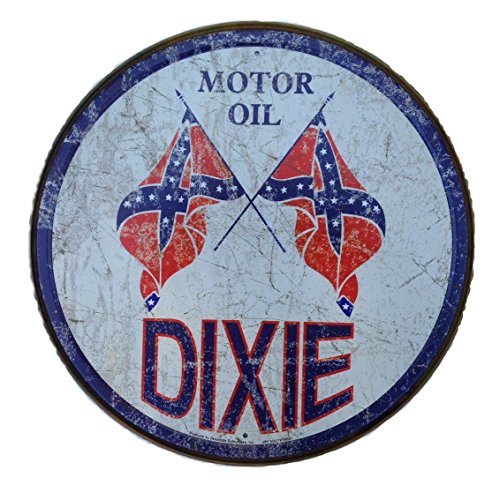 Dixie Gas - Weathered Round Oil & Gasoline Tin Sign 11.75" Dia.