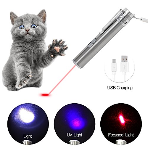 Studio : Tacobear Publisher : Tacobear Binding : Misc. Product Description Color: Silver Material: 304 Stainless steel Size: 4.6*6.29*6.29inch Note: This is a LED light . For best performance stand within 3 feet of kitty. This is a safe option instead of the potentially harmful lights.But still do not use this to illuminate the cat's eyes. Function:Keep your pet busy for hours chasing with this pointer! Package included: 1* Multi Function LED Light 1 * USB Cable 1* Flannelette bag Notice: The optimal range is about 3-5 m. Not suitable for outdoor use under the sun or strong light. cat toy Interactive LED Cat Toys 0