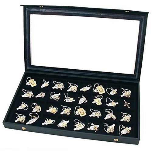 When in need to organize and professional display expensive rings and earrings, this jewelry organizer case is the answer. Clean smooth velvet lined, sleek, innovatively designed jewelry box case. The jewelry display is great for personal use at home, and perfect for a counter top jewelry display case in stores or trade shows.