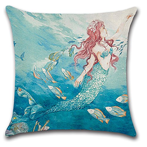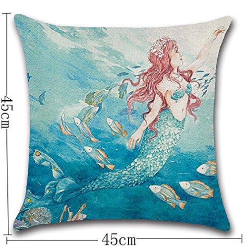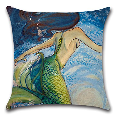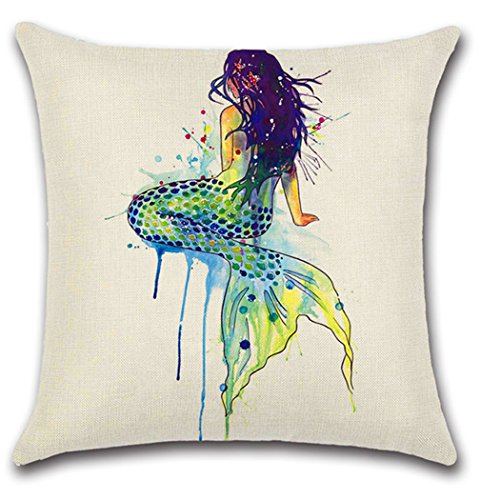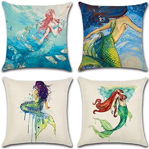 Mermaid Pillow Case,Flax Throw Pillow Case Cushion Cover Home Decorative 4-pack