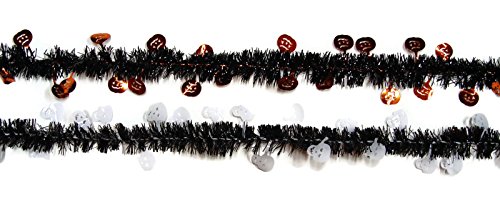 Halloween Pumpkin and Skull Tinsel Garlands - One Each - 18 Feet Total Length
