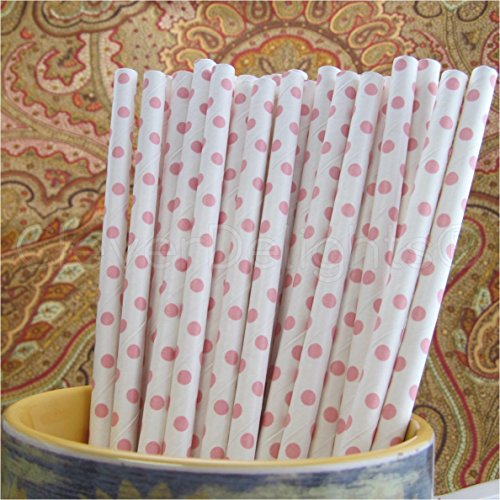- Baby pink polka dot paper straws