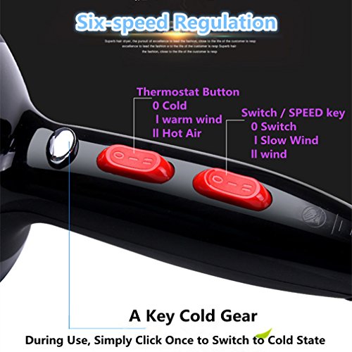 Latest Upgrade AC Motor 3000W 6-speed Hair Dryer (once the short circuit caused by leakage, leakage protection function is automatically activated to ensure the safety of you and your family)When the switch is powered down, press the red button,The hair dryer continues to work