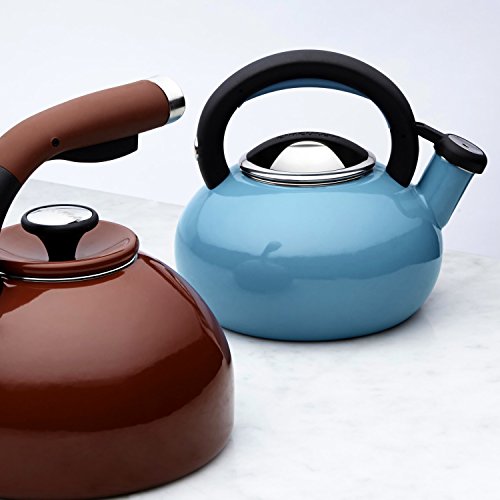 Circulon has brought more than 25 years of style and functionality to the home, and for the day's first piping hot cup of coffee or tea, the Circulon 1.5-quart Sunrise teakettle delivers both and then some. The distinctive shape of this teakettle looks fantastic on the stovetop or around the kitchen, and it boils up to 6 cups of water for delicious hot cocoa with the family or a medium to large pot of English breakfast tea with friends. A whistle pleasantly signals when the water is at the boil, and the handle's squeeze-and-pour spout is easy to operate. This teakettle's handsome blend of style and utility also complements other great Circulon cookware to add even more design to your kitchen. at Any hour of the day or night, the Circulon 1.5-quart Sunrise teakettle serves up hot beverages with terrific design and performance.Feature