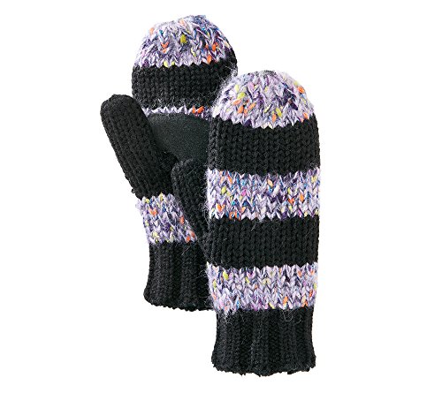 Product Description These warm mixed yarn mittens feature a fun stripe pattern with sequins for a fancy touch. A suede palm patch helps to secure your grip while the Sherpasoft lining adds extra warmth and comfort. 0