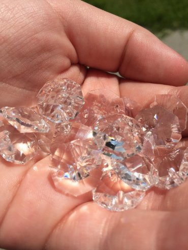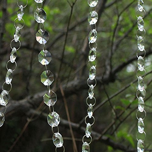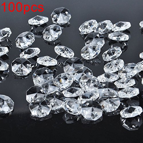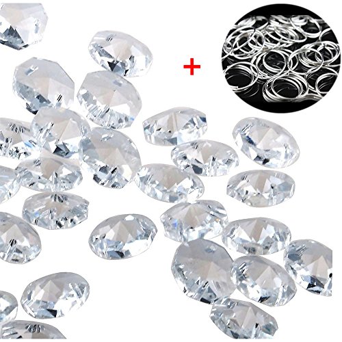 Bonayuanda 100Pcs 14mm Clear Crystal Octagon Beads+ 100Pcs Stainless Curtain Rings Jump Rings Key Rings for Chandelier Prisms Curtain Parts Jewelry Making