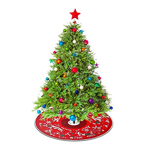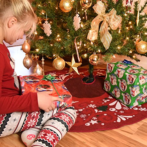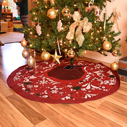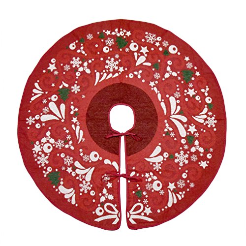 Primode Red Xmas Tree Skirt 50", Jacquard Stitched Woven in Holiday Images, Holiday Tree Ornament Decoration