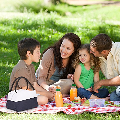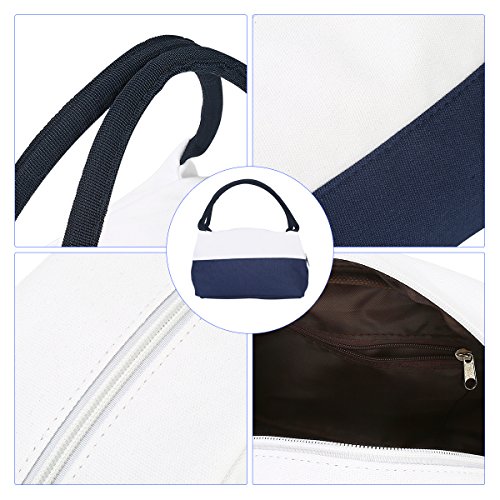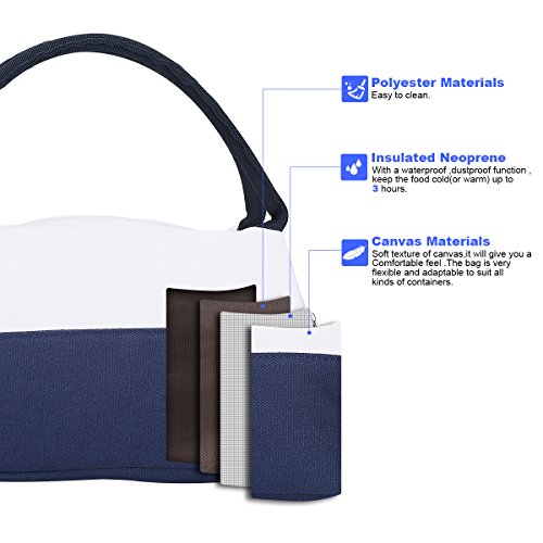 Lunch Bags Big, HOMREE Waterproof Canvas Lunch Bag Large capacity Reusable Fashion Lunch Tote Bag Lunch Bag Grocery Bags with Zipper (Big/White)