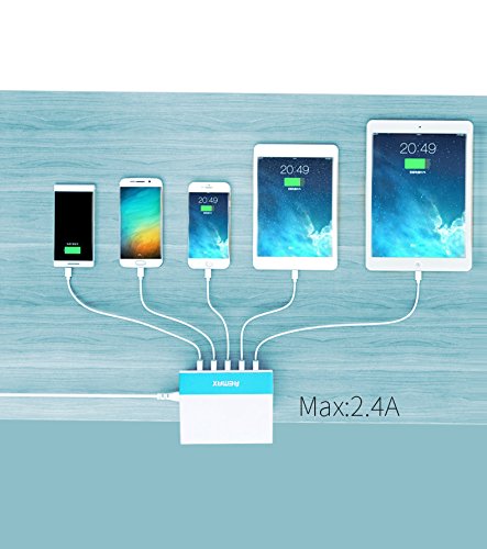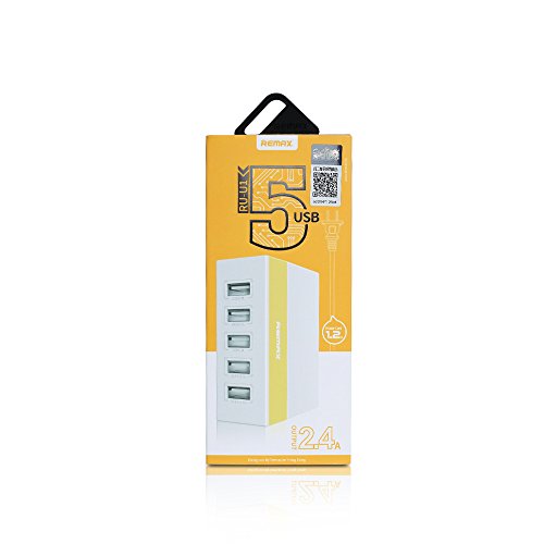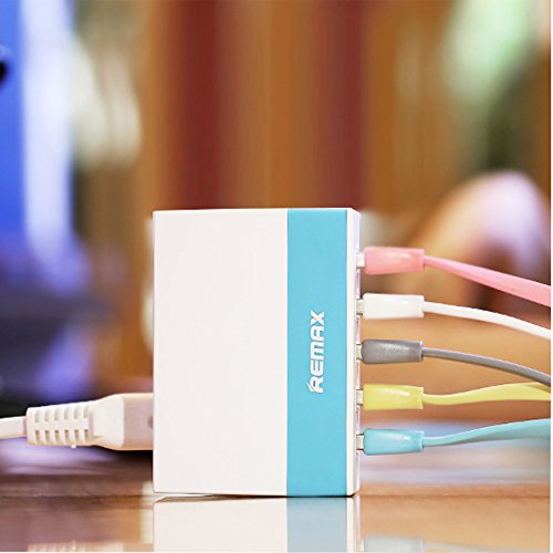 Remax Quick Charge 2.0 5-Port Intelligent USB Charger Portable Travel Power Adapter With 4FT US Plug Power Cable for Apple and Android Devices and more(Pink)