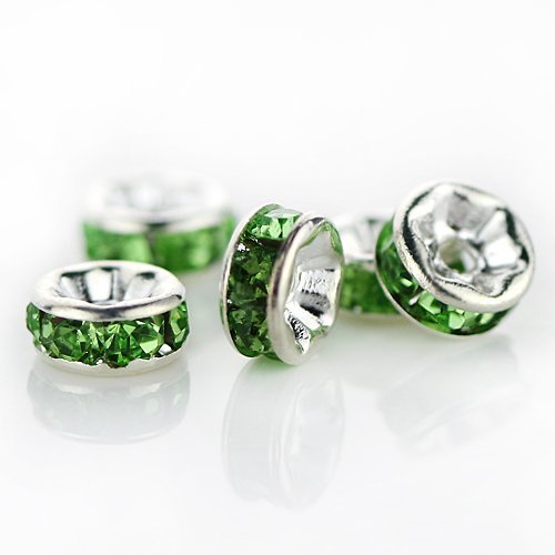 100 Pcs Swarovski Crystal Rondelle Spacer Bead Silver Plated 8mm Green Turma (216)