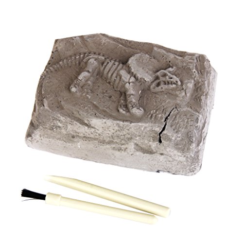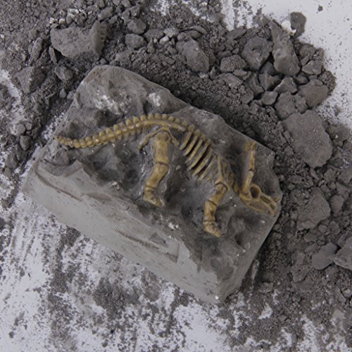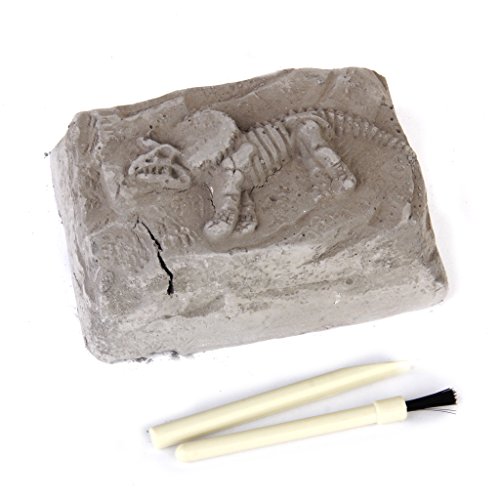 Description: Excavate a miniature dinosaur skeleton from a block of plaster -earth Each kit includes unearthed block, dig excavation tool, brush Twelve assorted dinosaur styles- sent randomly. Suitable for ages 7 Excellent party favor! Material: Plastic, sand and gypsum Color: As shown in picture Unearthed Block Size: Approx. 9.5 x 6.5 x 3.5cm / 3.74 x 2.56 x 1.38 inch