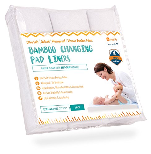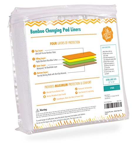 Ultra-Soft Waterproof Changing Pad Liners [3 Pack] - Made of Bamboo Fabric - 4 Thick Layers of Protection - Washer/Dryer Friendly - Extra Large 27” x...