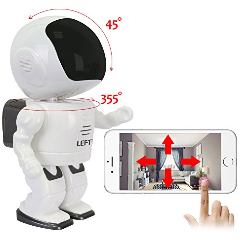 -. Feature : HOME SURVEILLANCE-Creative Space Robert Appearance Can Be Home Decoration As Well As Home Surveillance.The robot can not walk / FREELY PAN-TILT CONTROL-Horizontal 355 Degree Angle,Vertical 45 Degree Angle,Support Smart APP Remotely Control,No Monitor Blind / TWO-WAY AUDIO AND MOTION DETECTION-Built-in high quality microphone and speaker,press the intercom button on the mobile APP,you can talk with your families easily,and the alarm message will be pushed to mobile device when the motion detection is triggered,and the pictures will be captured to the memory cards as proof. / THE PACKAGE INCLUDE Camera which made of high quality chip,and polyethylene,a US power charger,a bracket,and a user manual / 30 DAYS MONEY BACK GUARANTEE AND A 12 MONTHS WARRANTY