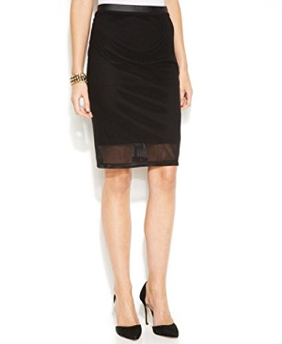Inc International Concepts Petite Faux-Leather-Trim Mesh Pencil Skirt Black 8P