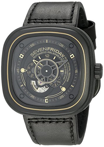 -. Binding : Watch -. Brand : SEVENFRIDAY -. Color : Black/Gold -. Department : womens -. EAN : 8057681323753 -. Feature : Open balance wheel movement Miyota 82S7, automatic and manual winding, and a special minute hand designed to be part of the mechanical movement / Specially hardened and antireflective treated mineral glass / Japanese-automatic Movement / Case Diameter: 47.6mm / Water Resistant To 99 Feet -. Label : SEVENFRIDAY Watches MFG Code -. Manufacturer : SEVENFRIDAY Watches MFG Code -. Model : P2-2 -. MPN : P2-2 -. PackageQuantity : 1 -. PartNumber : P2-2 -. ProductGroup : Watch -. ProductTypeName : WATCH -. Publisher : SEVENFRIDAY Watches MFG Code -. Studio : SEVENFRIDAY Watches MFG Code -. Title : SEVENFRIDAY Men's P2-2 WORKS Analog Display Japanese Automatic Black Watch
