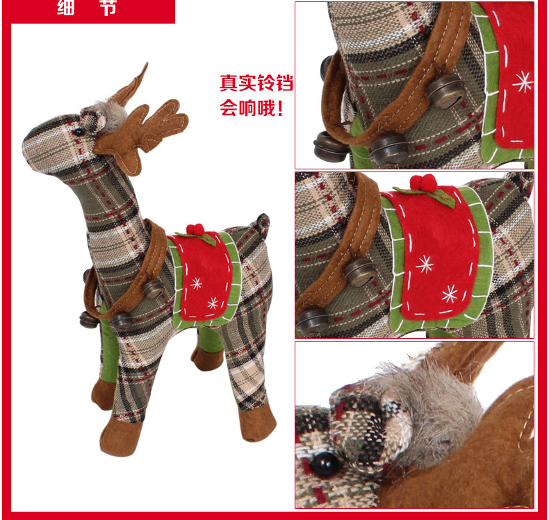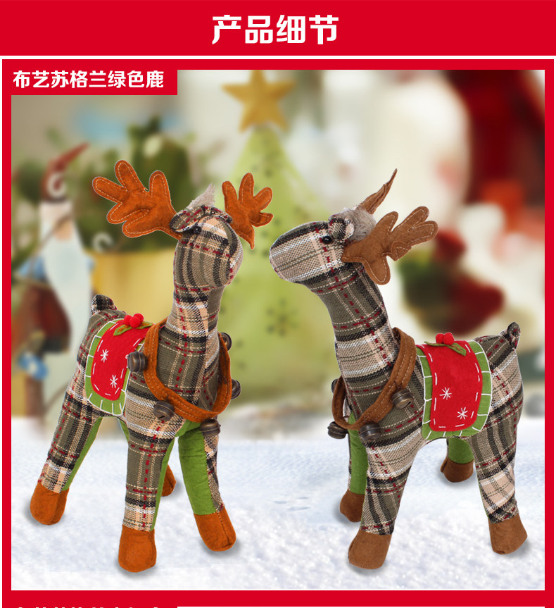 千奇坊 布艺苏格兰红色/咖色 圣诞驯鹿麋鹿公仔摆件 圣诞节装饰品