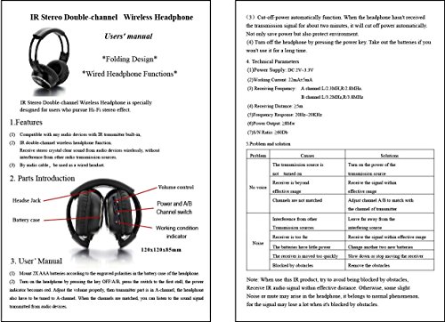 One Wireless 2 Channel Headphone Fold Flat Infrared Rear Entertainment System DVD Player IR Headphones For In Car Listening With Case and 3.5mm Auxiliary Cord
