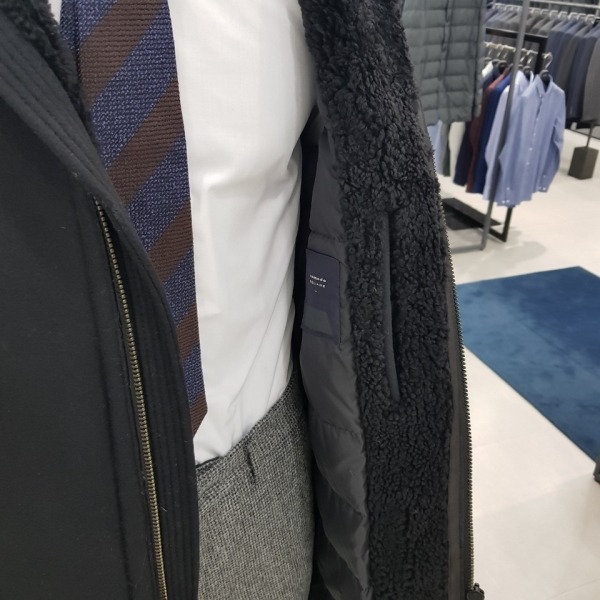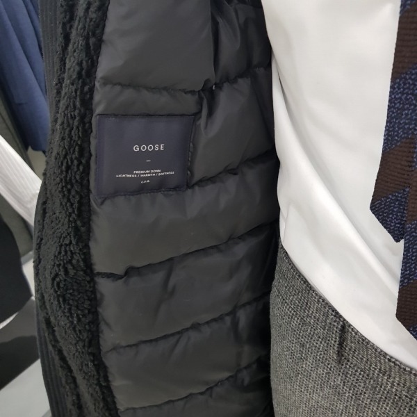 17FW 신상품이며 천연 양털카라와 가벼운 본딩소재로 구스다운 코트입니다^^