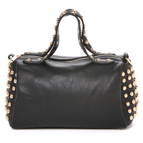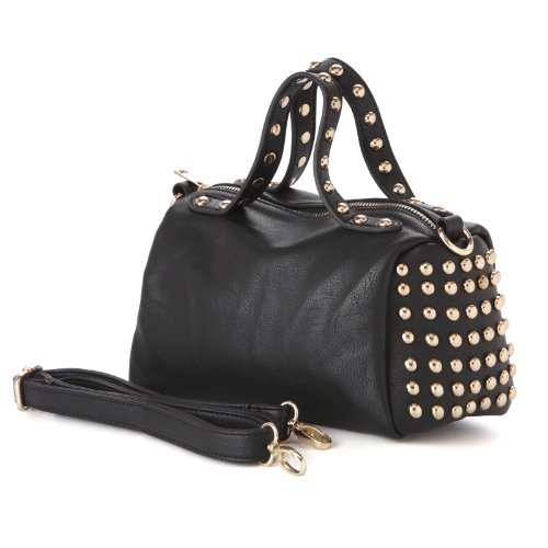 - Title : MG Collection Studded Black Mini Bowling Shopper Tote Crossbody Messenger Bag