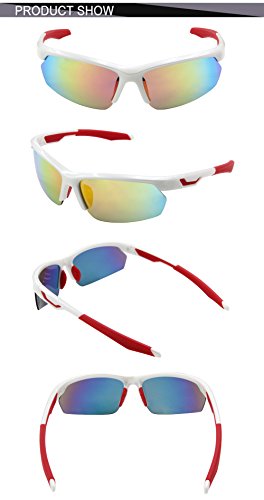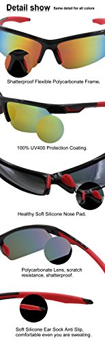 -. Feature : Frame and Lens are made of high quality Polycarbonate material and durable enough for long time using and also have 100% UV protection / The TAC lens block 100% of UVA, UVB and UVC rays, and harmful blue light to 400nm. These harmful rays are a leading cause of cataracts, skin cancer and wrinkles around the eyes-all great reasons to block them out. / Impact and scratch resistance lens, it will not be broken even if you hit the lens with hammer. / Lightweight design is ideal for usage by motorcycle and cycling, driving, running, fishing, racing, skiing and climbing, Trekking or other outdoor activities enthusiasts. Allows for easy and convenient to carry , come with hard protection box. / Comes with a 1-year limited warranty against manufacturing defects and original packing (Hard Case x1,Carrying Bag x1,Cleaning Cloth x1,Mini Screwdriver x1)
