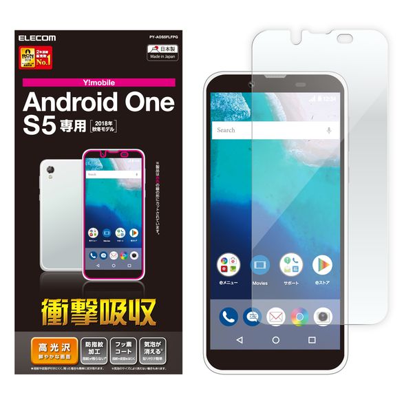●特厚シリコン層が衝撃を吸収し液晶画面を保護する、指紋防止・高光沢タイプのAndroid One S5用衝撃吸収フィルムです。