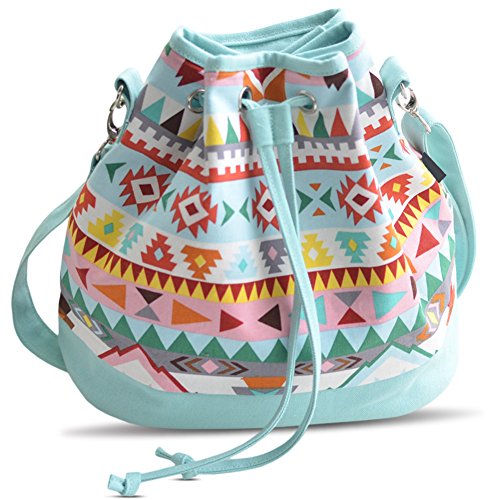 -. Feature : Drawstring closure with magnetic claps for extra security. / Interior features printed lining, 1 zip pocket, 1 cellphone pocket and key hook. / Triple the style, triple the chicness wear. The bucket bag as a crossbody or shoulder bag via its long detachable strap, or carry it as a contemporary clutch. / A richly patterned and durable canvas lend distinctly bohemian attitude to this drawstring bucket bag, featuring a detachable crossbody strap for multiple styling options. / Versatile to use in any event like work, school, grocery shopping, gym, travel, beach, weekender or everyday use