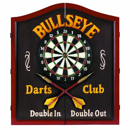 RAM Gameroom Products Wooden Dartboard Cabinet, "Bullseye Darts Club - Double In, Double Out"