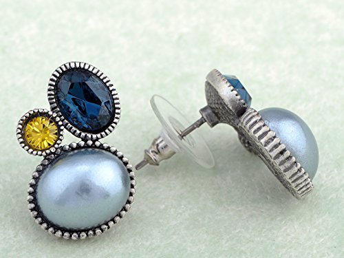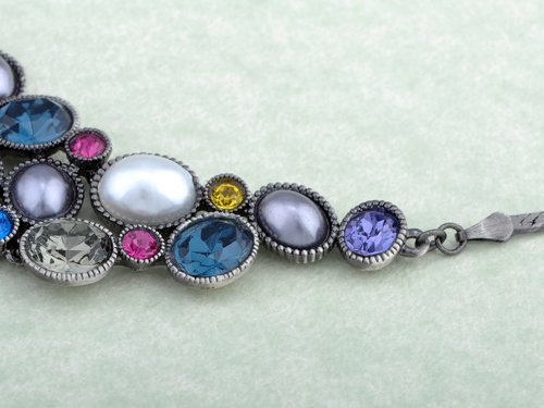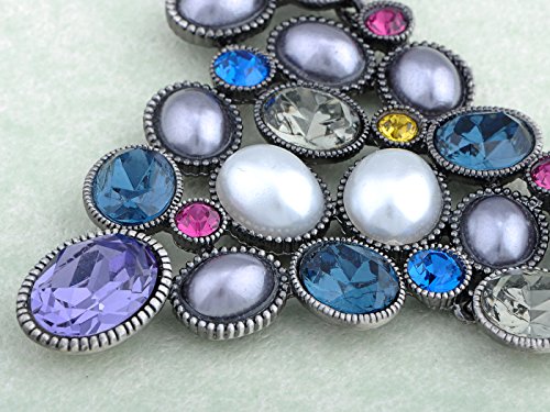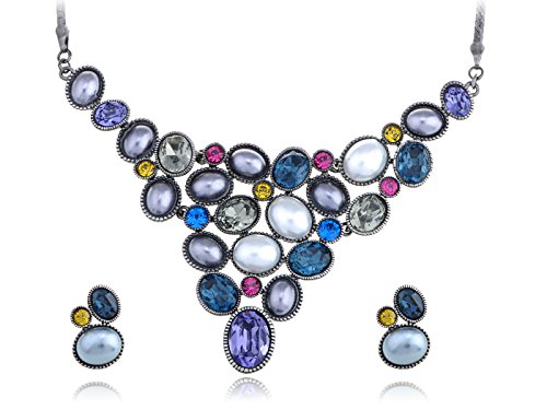 -. Title : Faux Pearl Colorful Pebble Bib Swarovski Crystal Element Earring Necklace Set
