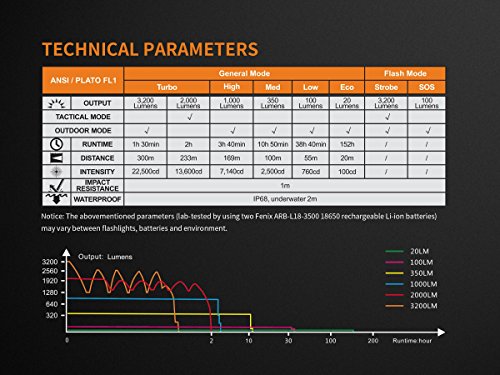 - SUPER BRIGHT TACTICAL FLASHLIGHT - Upgraded to a high performance CREE XHP70 LED, the TK35UE 2018 delivers up to 3200 lumens of light with 328 yards throw providing the optimum beam for searching, inspecting and self-defense.