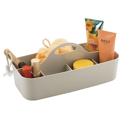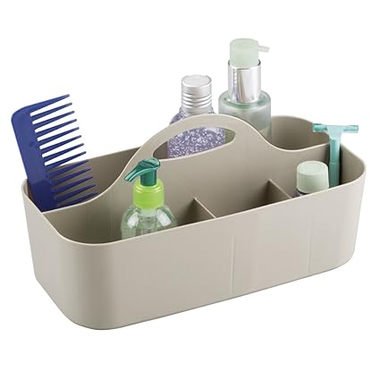 - Organizes shampoo, conditioner, soap, loofahs, razors, shaving cream, cosmetics and more