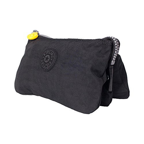 Product Description This Kipling Creativity Large pouch slides very easily into your handbag and gives you some more practical storage. Perfect for safeguarding your passport, money, keys and little beauty essentials. Comes in black with silver zipper detail and a pop of yellow color on the exterior zipper. Features a top zip closure with three interior pockets, middle pocket features additional zip closure to keep smaller items safe and sound! 0