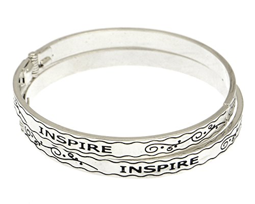 -. Binding : Jewelry -. Brand : ArmParty -. Department : womens -. Feature : This perfectly round shaped bangle has inner diameter of about 2.3 inches and opens at one hand to slide any sized wrists. / Polished to mirror-perfection, the bracelet is engraved with the following words and intricate filigree details / INSPIRE / SP.R.Ing hinge mechanism on one end and smooth opening on the other end. / Click on the heart below the picture to favor it. -. Label : BlingKicks -. Manufacturer : BlingKicks -. ProductGroup : Jewelry -. ProductTypeName : FASHIONNECKLACEBRACELETANKLET -. Publisher : BlingKicks -. Studio : BlingKicks -. Title : INSPIRE inscribed Filigree Inspirational Brass Hinge Silver Plated Bangle Bracelet