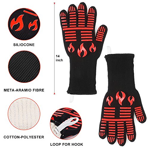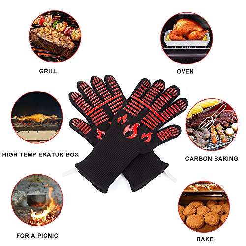 - The BBQ grilling gloves are suitable for kinds of occasions, apply to all the outdoor grilling & BBQ, oven, fireplace, camping, kitchen, mechanics and so on. Enjoy great success indoor or outdoor whether you're a professional chef.