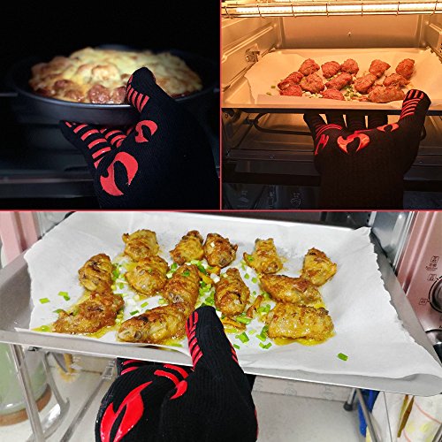 Eilcoo BBQ Grilling oven Gloves, 932°F Extreme Heat Resistant,Great Gloves For Cooking,Men,Women,Kitchen,Outdoor,Baking,1 Pair Extra Forearm Protection,One Size Fits Most(Black with Red 14 Inch)